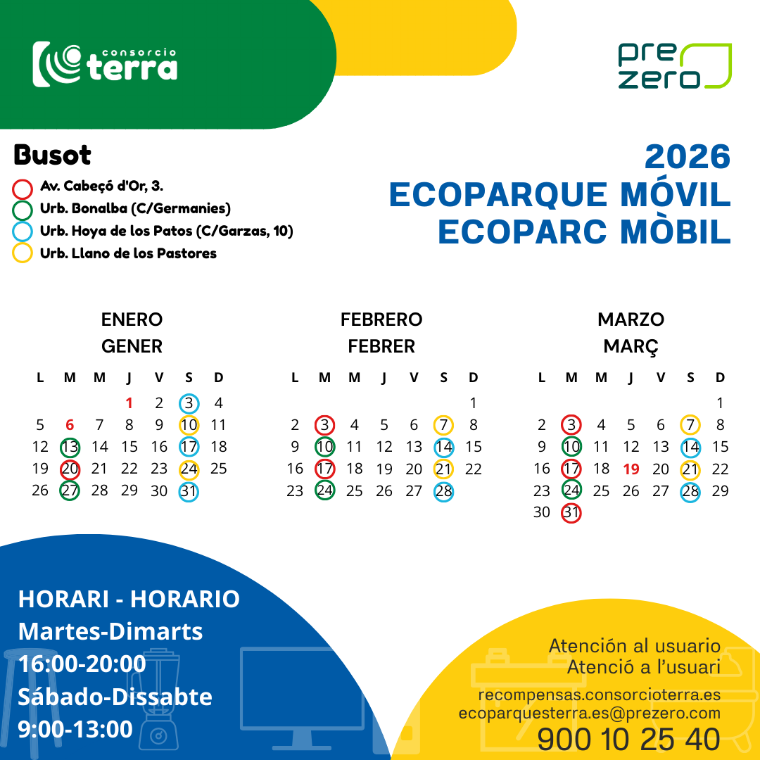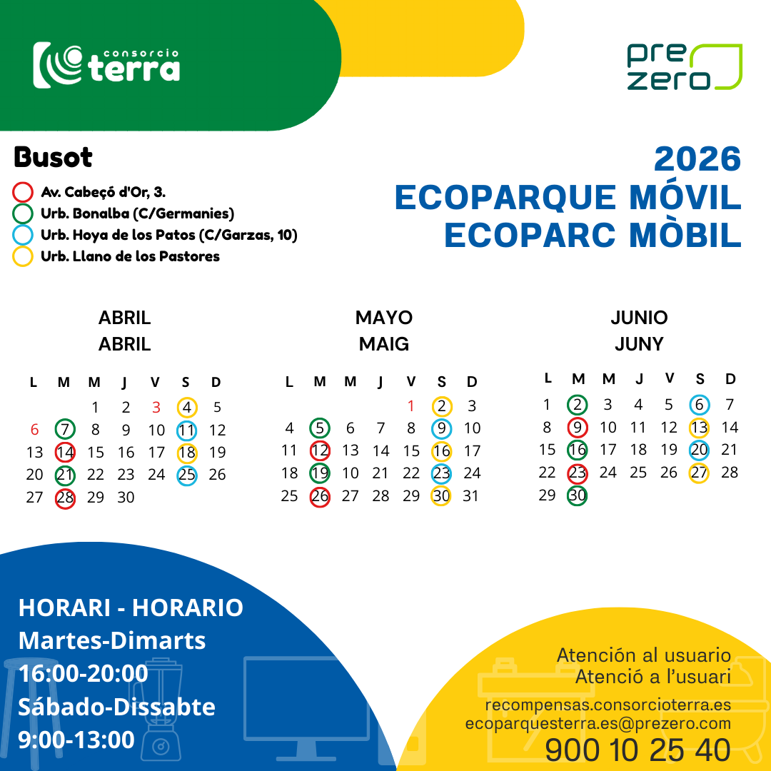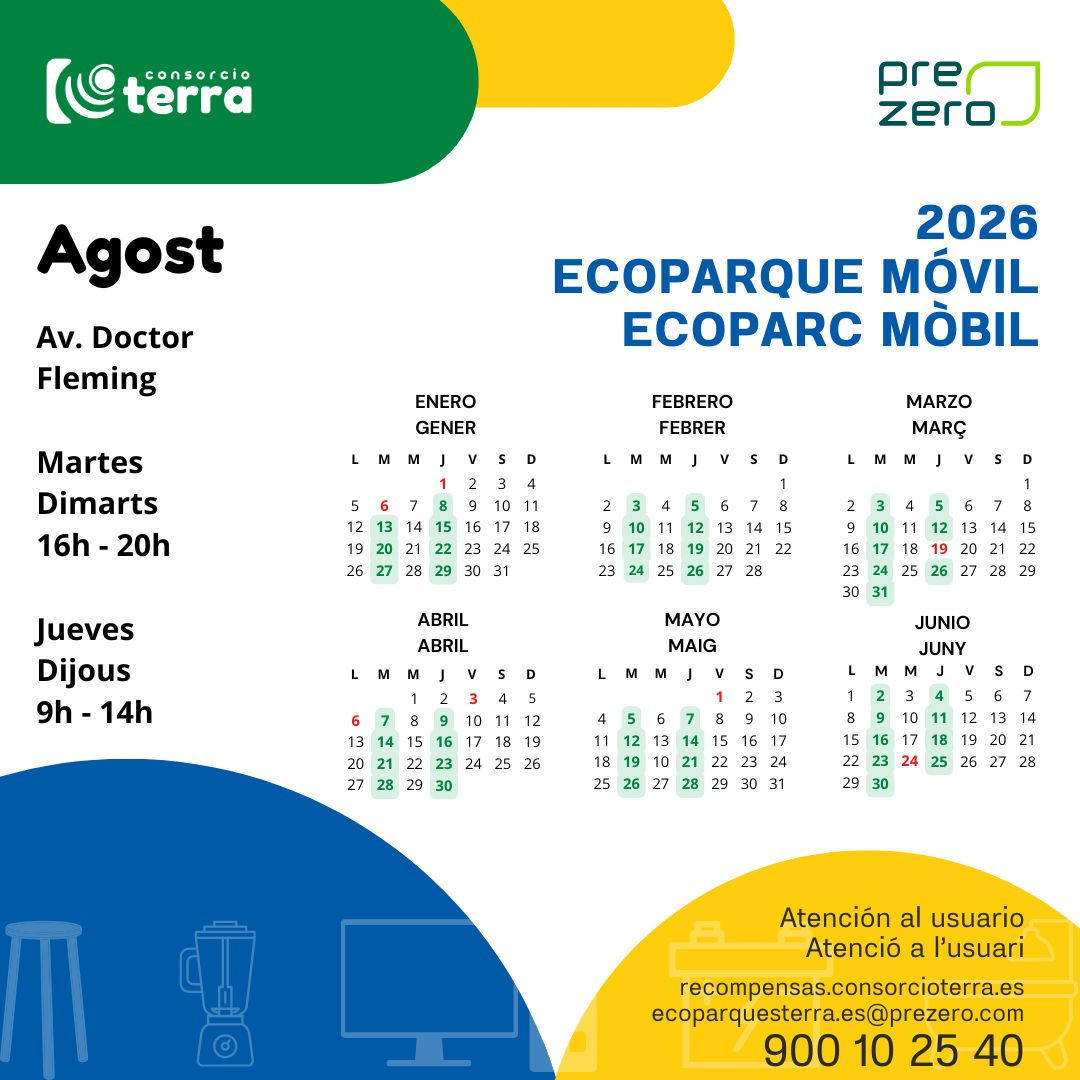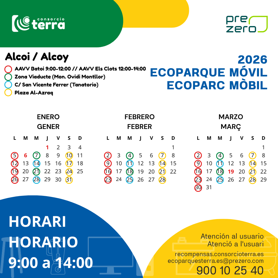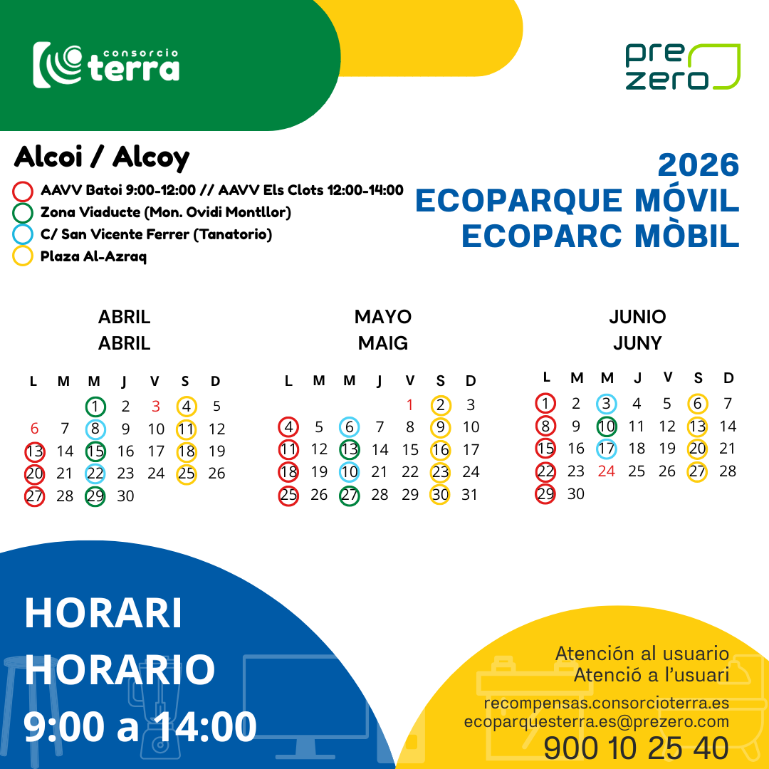 Desde esta fecha, los ecoparques fijos de Ibi, Muro de Alcoy, Xixona, San Joan d’Alacant, La Torre de les Maçanes, Benilloba, l’Orxa, Agost, Cocentaina, Mutxamel y Alcoy forman parte de la red consorciada, por lo que pueden ser utilizados por cualquier vecino o vecina de los municipios del Consorcio. También están en servicio los 3 ecoparques móviles y las 3 ecomóviles con presencia en los 37 municipios.