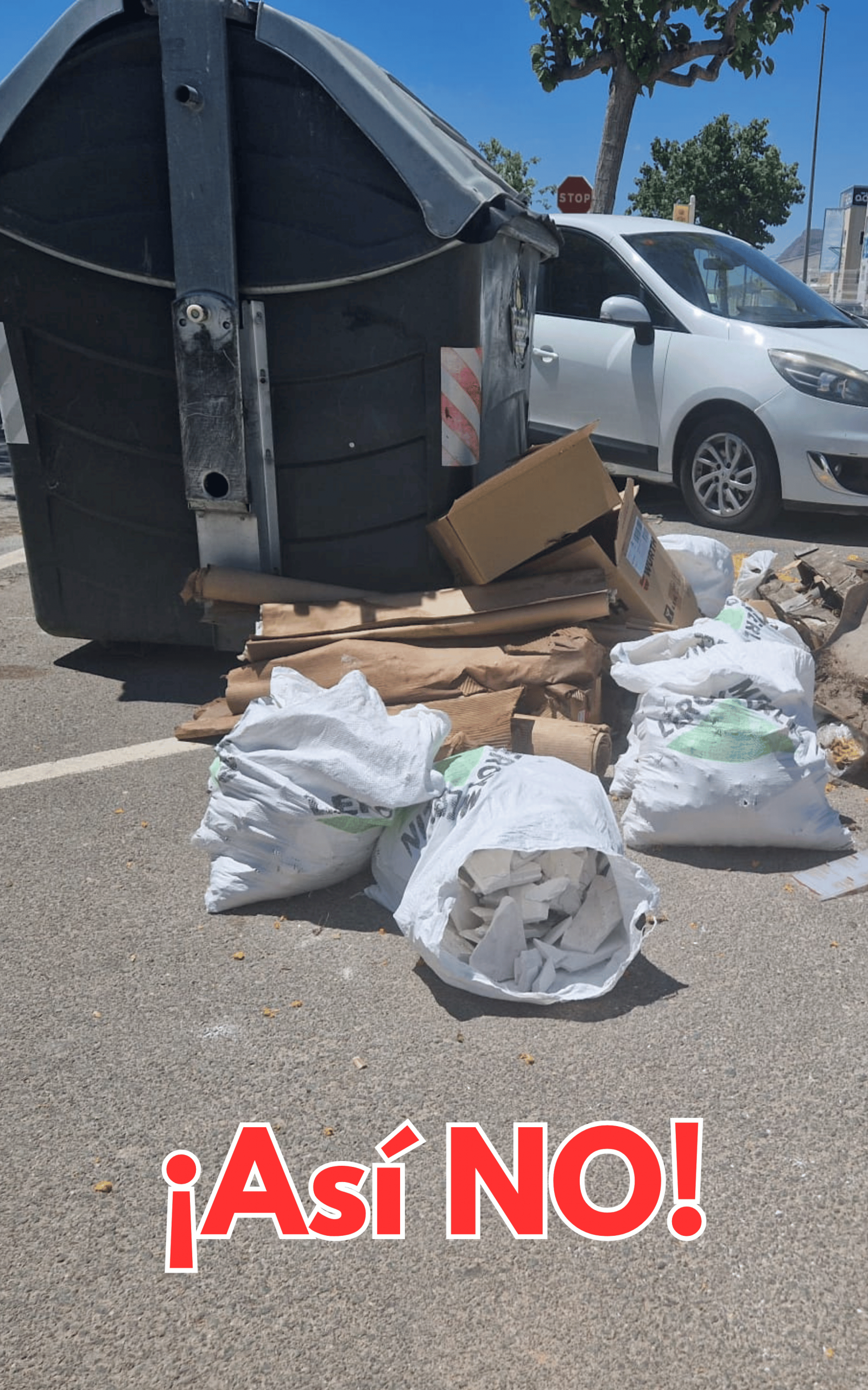 Sin embargo, tenemos prácticas incívicas con abandonos en zonas de contenedores de bolsas de escombros o descargas ilegales en aceras, viales y zonas de poco tránsito. Estos malos profesionales de la construcción y reforma utilizan principalmente sacas etiquetadas con las marcas de las principales empresas del sector y otros almacenes. Además, también se localizan escombros dentro de los contenedores, que suponen 2,27% del total de residuos mezclados (1800 tn anuales) del total de residuos.